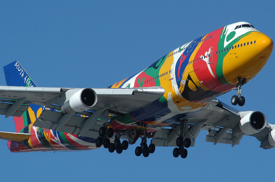 South African Airways had one of their Boeing 747-300s specially painted in rainbow colors to transport the South African Olympic team to the 2000 Summer Olympics in Sydney, Australia . The aircraft was dubbed the Ndizani.