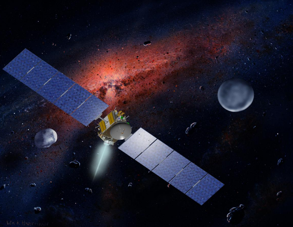 Dawn is a NASA spacecraft tasked with the exploration and study of the asteroid Vesta and the dwarf planet Ceres, the two largest members of the asteroid belt. The spacecraft was constructed with some European cooperation, with components contributed by partners in Germany, Italy, and the Netherlands. The Dawn mission is managed by NASA's Jet Propulsion Laboratory.[87]