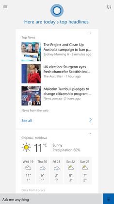 Microsoft also announced at Microsoft Build 2016 that Cortana would be able to cloud-synchronise notifications between Windows 10 Mobile's and Windows 10's Action Center,[26][27] as well as notifications from Android devices.[28][29]