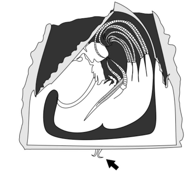 Crustaceans bear two pairs of antennae. The pair attached to the first segment of the head are called primary antennae or antennules. This pair is generally uniramous, but is biramous in crabs and lobsters and remipedes. The pair attached to the second segment are called secondary antennae or simply antennae. The second antennae are plesiomorphically biramous, but many species later evolved uniramous pairs.[1] The second antennae may be significantly reduced (e.g. remipedes) or apparently absent (e.g. barnacles).