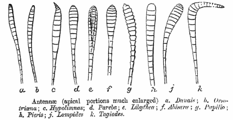 In the groups with more uniform antennae (for example: millipedes), all segments are called antennomeres. Some groups have a simple or variously modified apical or subapical bristle called an arista (this may be especially well-developed in various Diptera).[8]