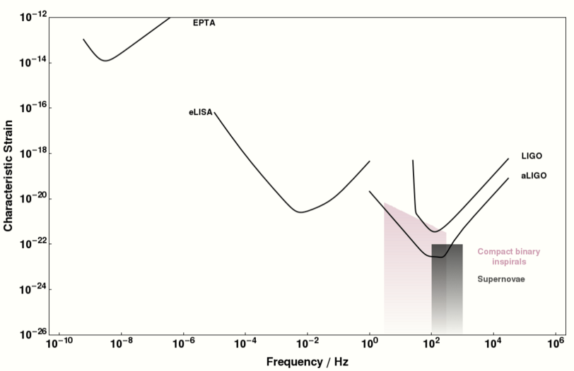 The first observing run operated at a sensitivity roughly 3 times greater than Initial LIGO,[58] and a much greater sensitivity for larger systems with their peak radiation at lower audio frequencies.[59]