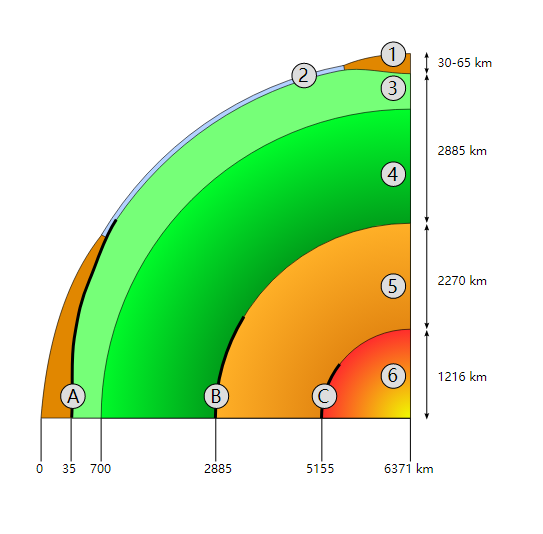 | 0–35 | ... Crust (locally varies between 5 and 70 km) |