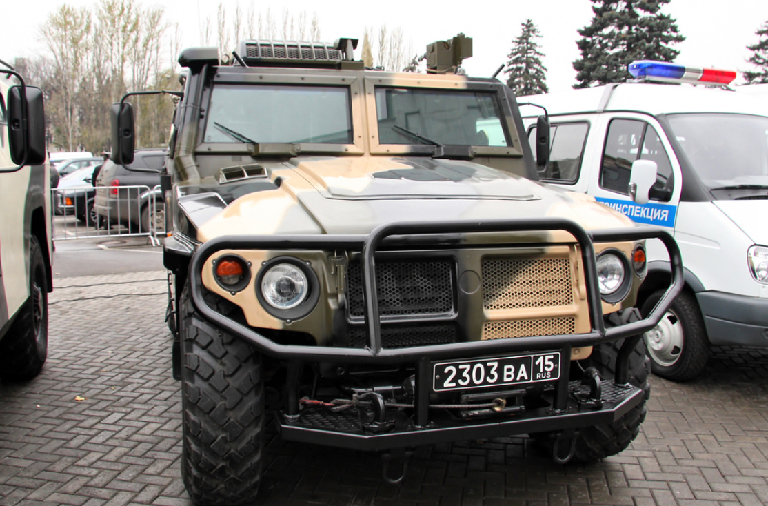 The CTC (English:STS) GAZ-233014 "Tigr" - a special vehicle - The Russian Army's armored version. Winged sheathed hull with an anti-splinter coating made of aramid fiber. 4-stroke turbocharged diesel engine Cummins B 205. STS GAZ-233014 was accepted for supply to units of the General Staff of the Russian Federation by Order of the Minister of Defense of the Russian Federation from March 6, 2007. The STS took part in the 2014 Crimean operation.[24]