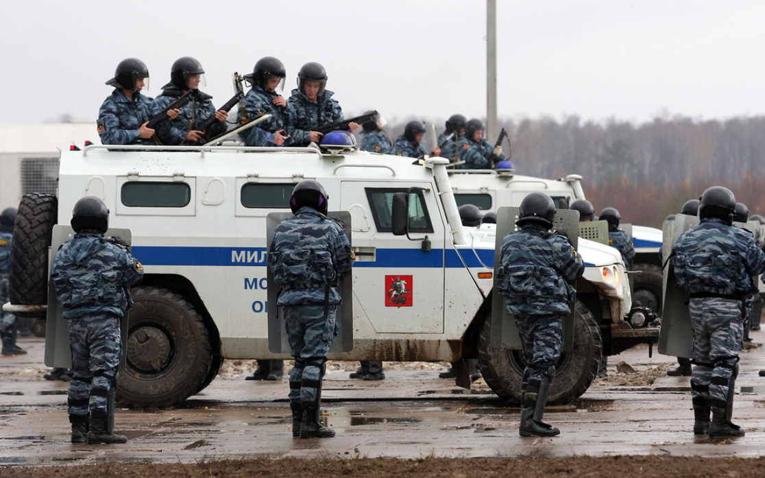 OMON SPM-1 vehicle during antiriot training in Moscow