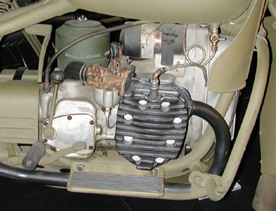 This position allowed both cylinders to protrude into the airflow, providing excellent air cooling for each cylinder.[15][24] The Harley-Davidson XA, which used a flat-twin engine with the cylinders across the frame, maintained an oil temperature 100 °F (56 °C) cooler than a Harley-Davidson WLA with a V-twin with the cylinders in line with the frame.[25]