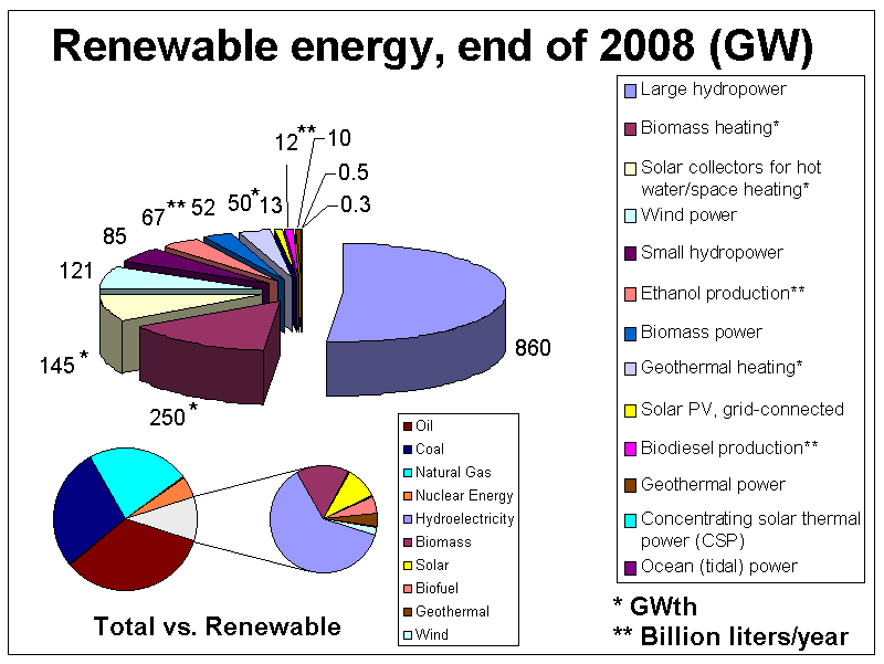 The world consumes approximately 3 CMO annually from all sources. The table [3] shows the small contribution from alternative energies in 2006.