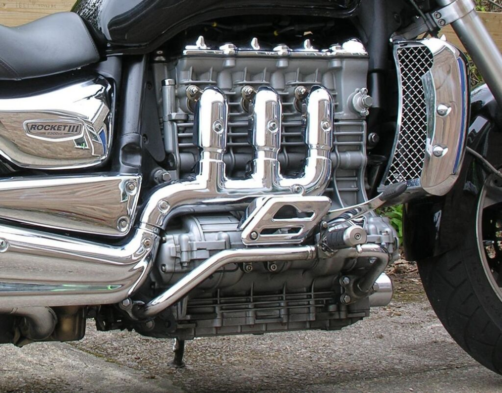 The Triumph Rocket III, has a 2,294 cc (140.0 cu in) straight-three engine and the company has produced a number of other transversely mounted straight-three engines,[27] such as the water-cooled T509 Speed Triple, which was also the company's first fuel injected machine; and 1,050 cc Speed Triple.[28]
