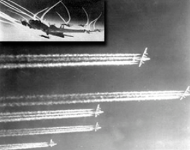 Proponents of the chemtrail conspiracy theory say that chemtrails can be distinguished from contrails by their long duration, asserting that the chemtrails are those trails left by aircraft that persist for as much as a half day or transform into cirrus-like clouds.[13] The proponents claim that after 1995 contrails had a different chemical composition and lasted a lot longer on the sky; proponents fail to acknowledge evidence of long-lasting contrails shown in World War II–era photographs.[5]