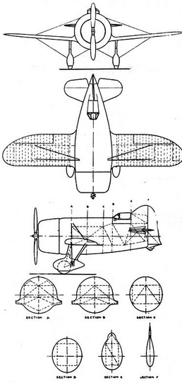 Assistant Chief Engineer[1] Howell "Pete" Miller and Zantford "Granny" Granville spent three days of wind tunnel testing at NYU with aeronautical engineering professor Alexander Klemin. The aircraft had a very peculiar design. Granville reasoned that a teardrop-shaped fuselage — especially as seen from directly above — would have lower drag than a straight-tapered one, so the fuselage was wider than the engine at its widest point (at the wing attachment point[s], within the length of the wing chord). The cockpit was located very far aft, just in front of the vertical stabilizer, in order to give the racing pilot better vision while making crowded pylon turns.