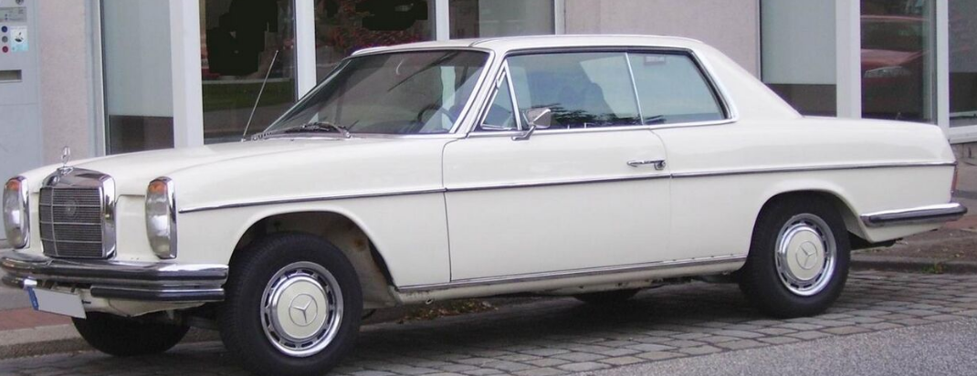 The Mercedes-Benz W114 and W115 models are a series of executive sedans and coupés introduced in 1968 by Mercedes-Benz, manufactured through model year 1976, and distinguished in the marketplace by names relating to their engine size. W114 models featured six-cylinder engines and were marketed as the 230, 250, and 280, while W115 models featured four-cylinder engines and were marketed as the 200, 220, 230, and 240. All were styled by Paul Bracq, featuring a three-box design. At the time Mercedes marketed sedans in two size classes, with the W114/W115 positioned below the Mercedes-Benz S-Class. Beginning in 1968, Mercedes marketed their model range as New Generation Models, giving their ID plates the designation '/8' (due to their 1968 Launch year). Because they were the only truly new cars of the so-called 'New Generation' and because of the '/8' or 'slash eight' designation, W114 and W115 models ultimately received the German nickname Strich Acht, loosely translated into the English stroke eight.