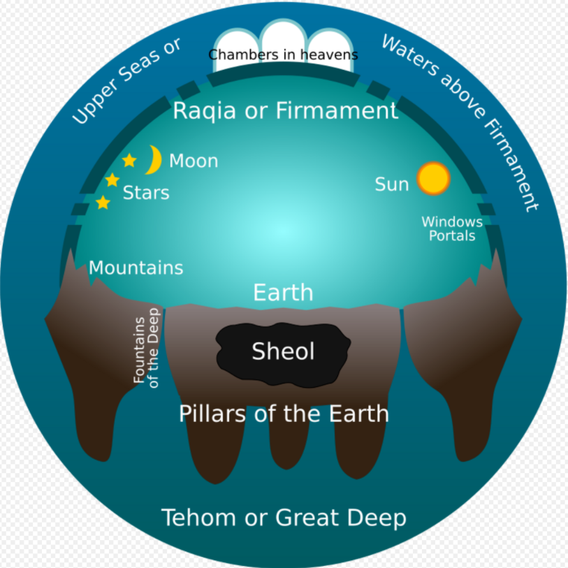 The Hebrew Bible depicted a three-part world, with the heavens (shamayim) above, Earth (eres) in the middle, and the underworld (sheol) below.[15] After the 4th century BCE this was gradually replaced by a Greek scientific cosmology of a spherical earth surrounded by multiple concentric heavens.[16]