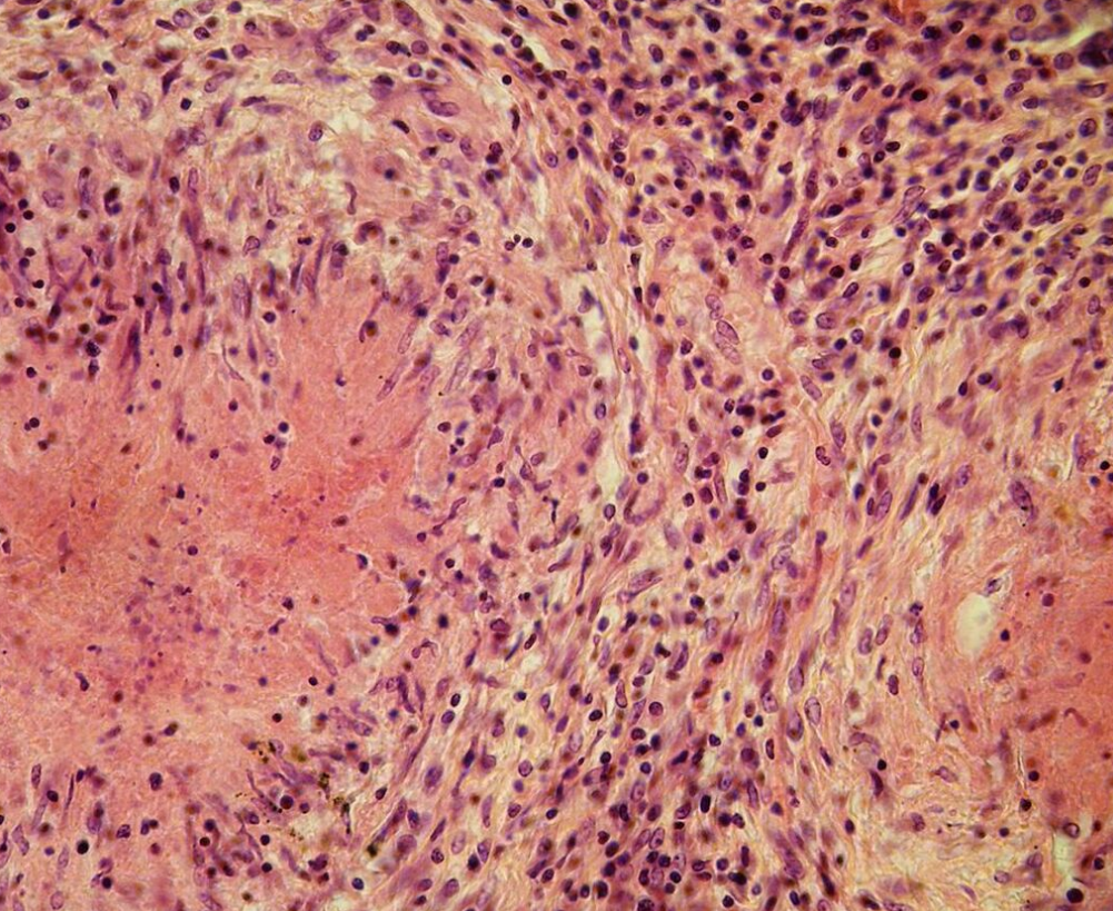 Epithelioid cells gather around the focus of necrosis, in direct contact with the necrotic masses, forming a kind of boundary zone. https://handwiki.org/wiki/index.php?curid=1560338