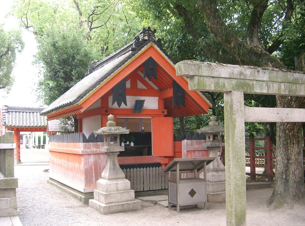 An unusual kaku-torii (角鳥居, lit. square torii) at Sumiyoshi Taisha: the nuki does not protrude and all members are square in section. https://handwiki.org/wiki/index.php?curid=1880591