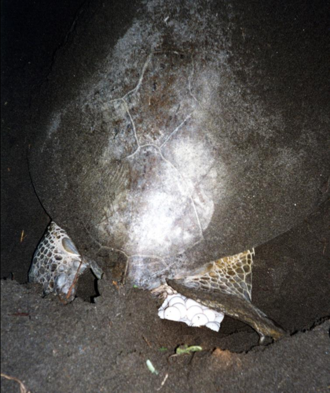 At around 45 to 75 days, the eggs hatch during the night and the hatchlings instinctively head directly into the water. This is the most dangerous time in a turtle's life. As they walk, predators such as gulls and crabs grab them. A significant percentage never make it to the ocean. Little is known of the initial life history of newly hatched sea turtles.[76] Juveniles spend three to five years in the open ocean before they settle as still-immature juveniles into their permanent shallow-water lifestyle.[77][78] It is speculated that they take twenty to fifty years to reach sexual maturity. Individuals live up to eighty years in the wild.[75] They are among the larger sea turtles, many more than a meter long and weighing up to 300 kilograms (660 lb).[79]