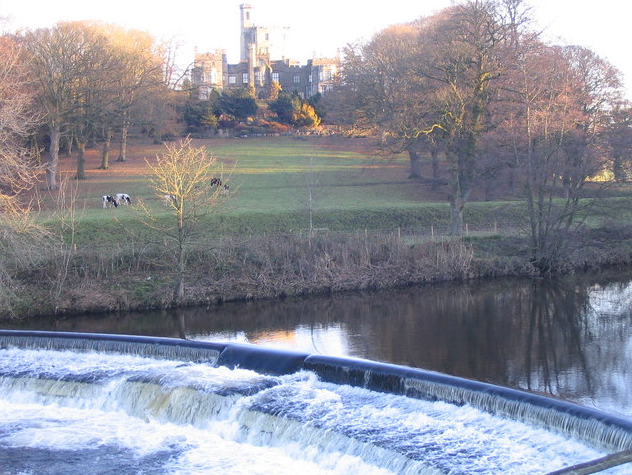 In the middle of this weir is a fish ladder, which allows trout and salmon to pass the weir to go upriver to spawn. https://handwiki.org/wiki/index.php?curid=1634168