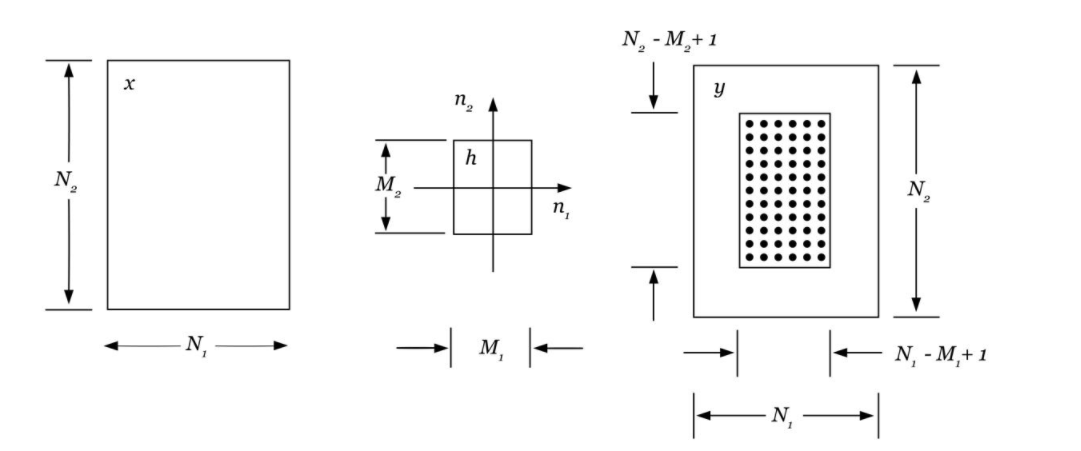 [math]\displaystyle{ y\left(n_1,n_2\right)=\sum_{k_1=-N_1}^{N_1}\sum_{k_2=-N_2}^{N_2}h(k_1,k_2)x(n_1-k_1,n_2-k_2) }[/math]