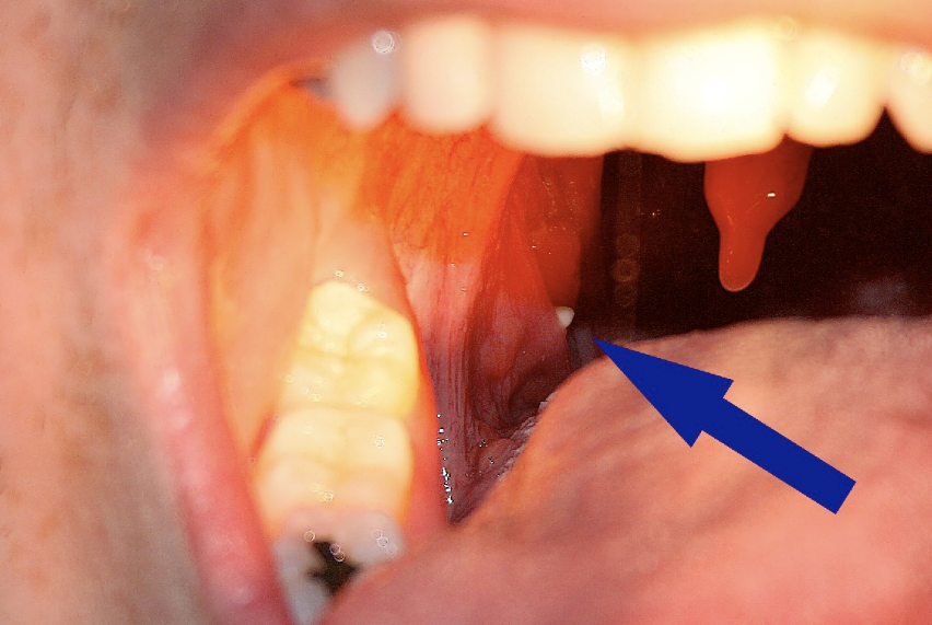 Tonsilloliths or tonsil stones are calcifications that form in the crypts of the palatal tonsils. They are also known to form in the throat and on the roof of the mouth. Tonsils are filled with crevices where bacteria and other materials, including dead cells and mucus, can become trapped. When this occurs, the debris can become concentrated in white formations that occur in the pockets.[2] Tonsilloliths are formed when this trapped debris accumulates and are expressed from the tonsil. They are generally soft, sometimes rubbery. This tends to occur most often in people who suffer from chronic inflammation in their tonsils or repeated bouts of tonsillitis.[2] They are often associated with post-nasal drip.