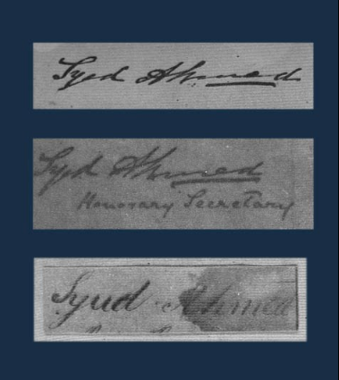 History was Sir Syed’s preferred area of study and in 1840, Sir Syed compiled a book of chronological tables about the Timurid rulers of Delhi from Timurlane to Bahadur Shah Zafar at the behest of Robert N. C. Hamilton, his patron. It was later published under the title Jam-i-Jum (Jamshed’s Cup).[99] In Silsilat-ul-Mulk he compiled the biographical data of all the ruler of Delhi in history.[100] During his stay in Bijnor, he wrote a history on the city of Bijnor but it was destroyed during the 1857 rebellion.[101] He also wrote critical editions of books like Ziauddin Barani’s Tarikh-e-Firoz Shahi published in 1862,[102] and Tuzk-e-Jahangiri published in 1864.[103] However his most important historical works that brought him fame as a scholar are the two editions of Asar-us-Sanadid and that of the Ain-e-Akbari.[104]