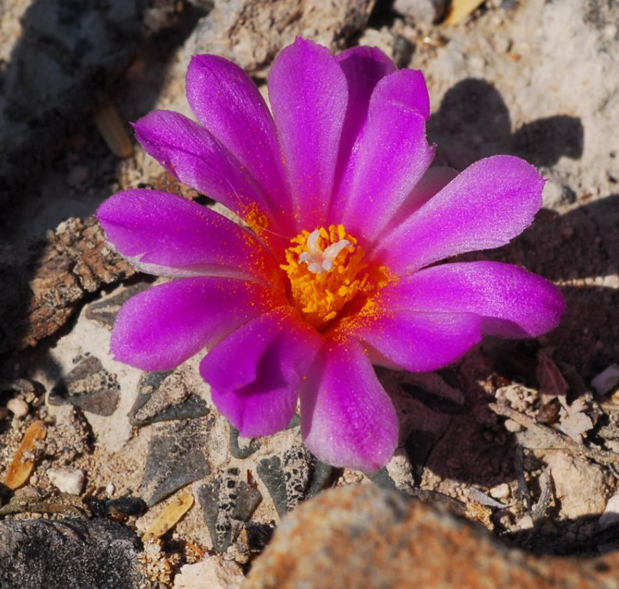 Like their spines, cactus flowers are variable. Typically, the ovary is surrounded by material derived from stem or receptacle tissue, forming a structure called a pericarpel. Tissue derived from the petals and sepals continues the pericarpel, forming a composite tube—the whole may be called a floral tube, although strictly speaking only the part furthest from the base is floral in origin. The outside of the tubular structure often has areoles that produce wool and spines. Typically, the tube also has small scale-like bracts, which gradually change into sepal-like and then petal-like structures, so the sepals and petals cannot be clearly differentiated (and hence are often called "tepals").[2] Some cacti produce floral tubes without wool or spines (e.g. Gymnocalycium)[8] or completely devoid of any external structures (e.g. Mammillaria).[2] Unlike the flowers of most other cacti, Pereskia flowers may be borne in clusters.[3]