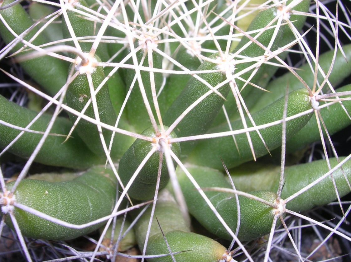 Hooked central spine (cf. Mammillaria rekoi) https://handwiki.org/wiki/index.php?curid=1180225