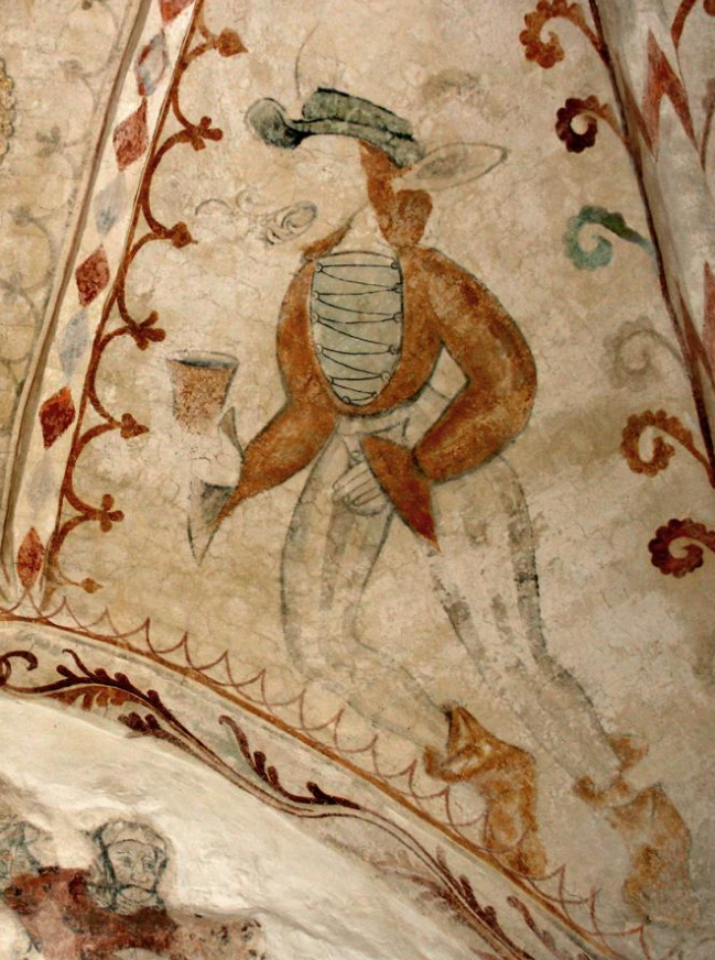 Envy Arch in the nave with a gothic fresco from 1511 of a man with a dog-head, which symbolizes envy (Dalbyneder Church, Denmark). https://handwiki.org/wiki/index.php?curid=1263977