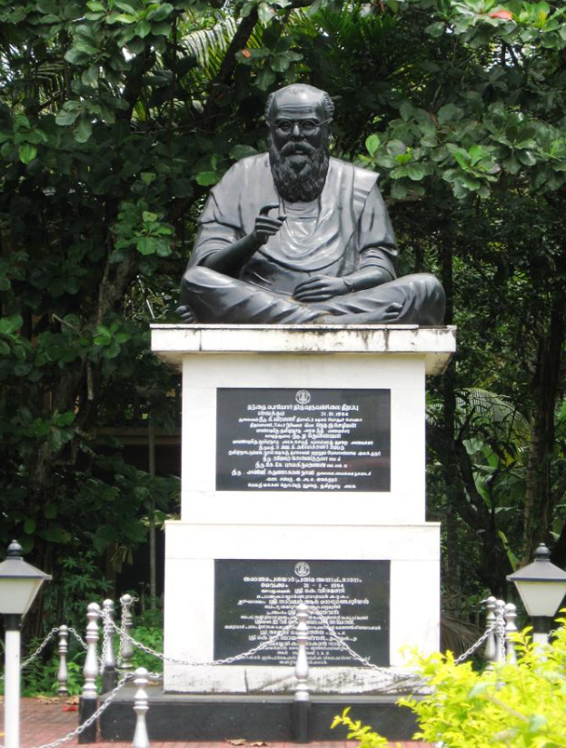 "They say Bharati is an immortal poet.…Even if a rat dies in an akrakāram, they would declare it to be immortal. … of Tamilnadu praises him. Why should this be so? Supposedly because he sang fulsome praises of Tamil and Tamilnadu. What else could he sing? His own mother tongue, Sanskrit, has been dead for years. What other language did he know? He cannot sing in Sanskrit. … He says Tamilnadu is the land of Aryas."[96]