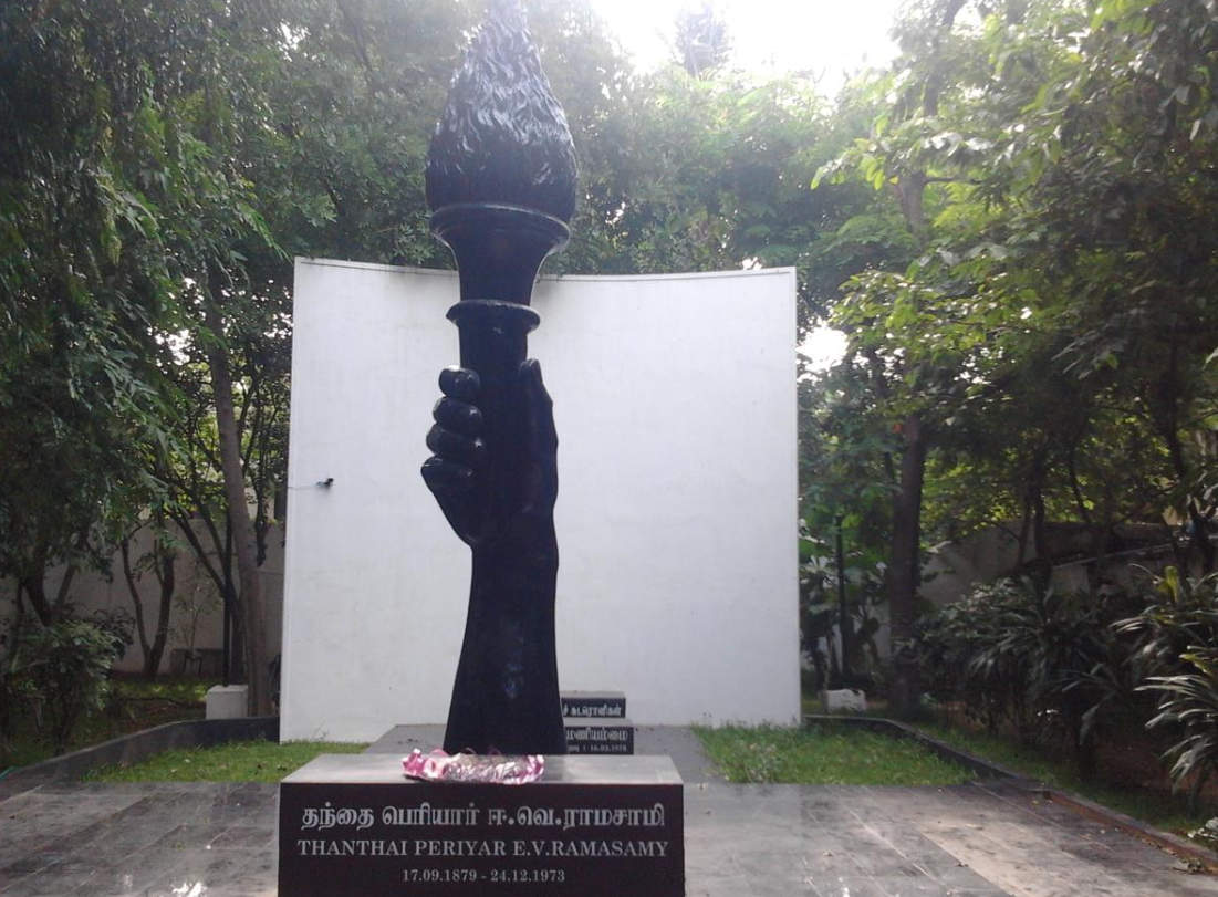 In 1956, despite warnings from P. Kakkan, the President of the Tamil Nadu Congress Committee, Periyar organised a procession to the Marina to burn pictures of the Hindu God Rama.[50] Periyar was subsequently arrested and confined to prison.[50]