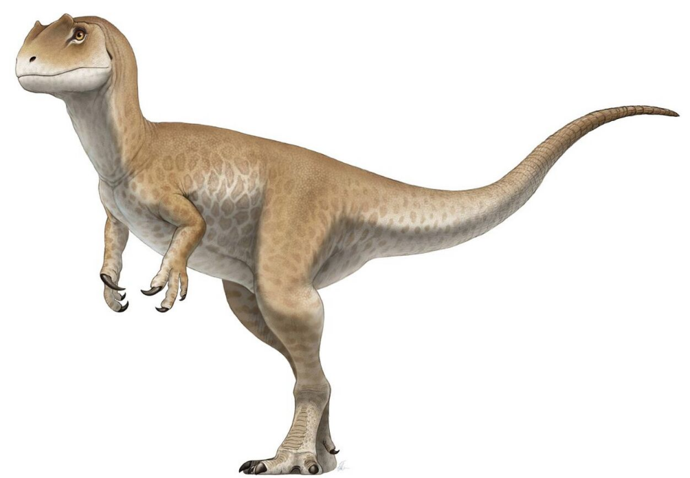 A. tendagurensis was named in 1925 by Werner Janensch for a partial shin (MB.R.3620) found in the Kimmeridgian-age Tendaguru Formation in Mtwara, Tanzania.[93] Although tabulated as a tentatively valid species of Allosaurus in the second edition of the Dinosauria,[22] subsequent studies place it as indeterminate beyond Tetanurae, either a carcharodontosaurian or megalosaurid.[94][95] Although obscure, it was a large theropod, possibly around 10 meters long (33 ft) and 2.5 metric tons (2.8 short tons) in weight.[3]