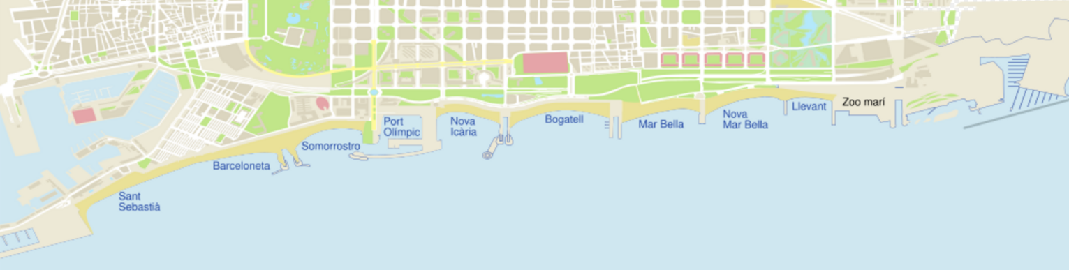 The Olympic Harbour separates them from the other city beaches: Nova Icària, Bogatell, Mar Bella, Nova Mar Bella and Llevant. These beaches (ranging from 400 to 640 m (1,310 to 2,100 ft) were opened as a result of the city restructuring to host the 1992 Summer Olympics, when a great number of industrial buildings were demolished. At present, the beach sand is artificially replenished given that storms regularly remove large quantities of material. The 2004 Universal Forum of Cultures left the city a large concrete bathing zone on the eastmost part of the city's coastline. Most recently, Llevant is the first beach to allow dogs access during summer season.