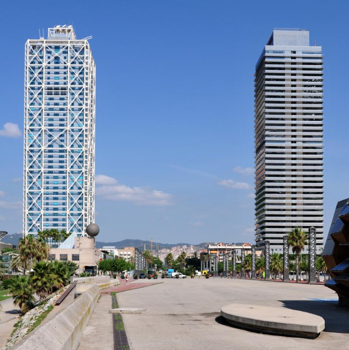 Hotel Arts (left) and Torre Mapfre (each 154 m (505 ft) in height. https://handwiki.org/wiki/index.php?curid=1313480