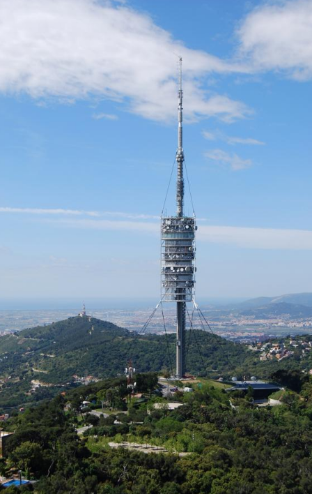 The Torre de Collserola on the Tibidabo is the tallest structure in Barcelona (288.4m). https://handwiki.org/wiki/index.php?curid=1731264