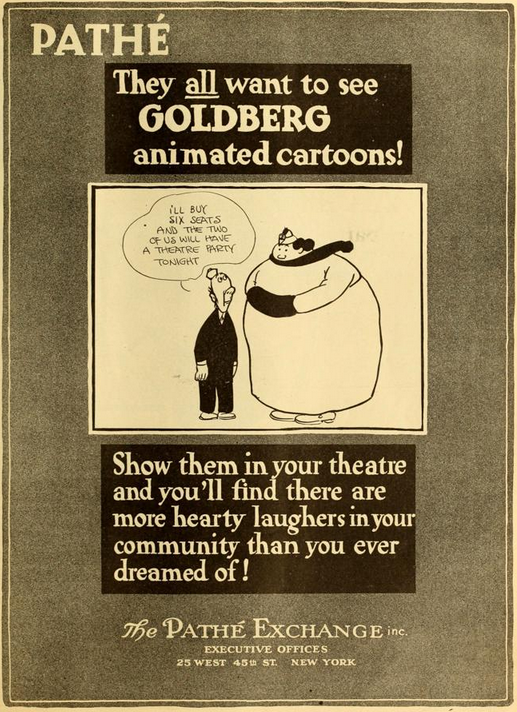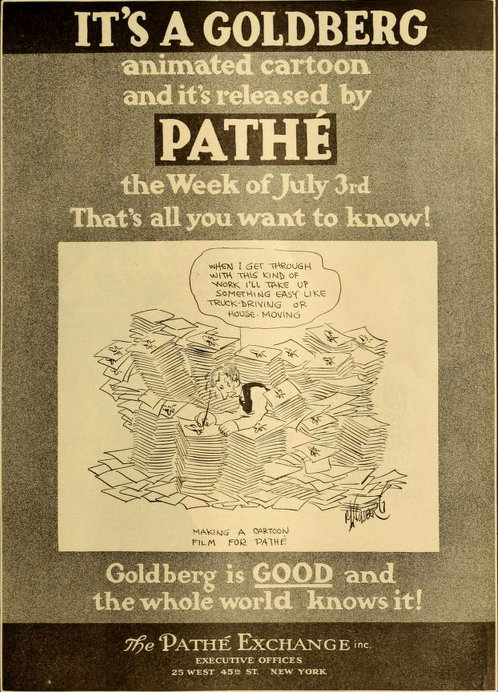 In 1916, Goldberg created a series of seven short animated films, finding humorous aspects to details of everyday life[9] in the form of an animated newsreel [10]. The seven films were released on these dates in 1916: May 8, "The Boob Weekly"; May 22, "Leap Year"; June 5, "The Fatal Pie"; Jun 19, "From Kitchen Mechanic to Movie Star"; July 3, "Nutty News"; July 17, "Home Sweet Home"; July 31, "Losing Weight."[11]