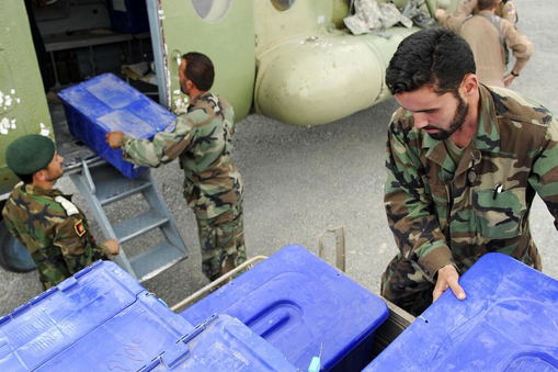 On October 23, election authorities, with UN assistance, began delivering ballots for the November 7 run-off. UN planes flew ballots and voting kits to provincial capitals from where they would be delivered to thousands of polling stations by helicopter, truck, women and donkey.[205][206]