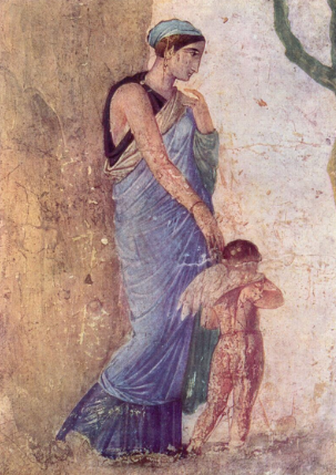 A Roman wall painting of Venus and her son Eros, from Pompeii (about 30 BC). https://handwiki.org/wiki/index.php?curid=1991380