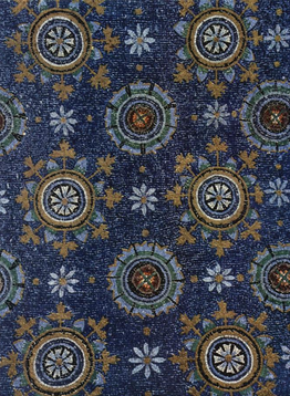 Blue Byzantine mosaic ceiling representing the night sky in the Mausoleum of Galla Placidia in Ravenna, Italy (5th century). https://handwiki.org/wiki/index.php?curid=1923949