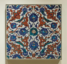 Flower-pattern tile from Iznik, Turkey, from the second half of the 16th century. https://handwiki.org/wiki/index.php?curid=1793846
