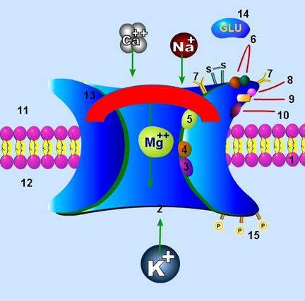 Uncompetitive inhibition can play roles in various other parts of the body as well. It is part of the mechanism by which NMDA (N-methyl-D-aspartate) glutamate receptors are inhibited in the brain, for example. Specifically, this type of inhibition impacts the granule cells that make up a layer of the cerebellum. These cells have the aforementioned NMDA receptors, and the activity of said receptors typically increases as ethanol is consumed. This often leads to withdrawal symptoms if said ethanol is removed. Various uncompetitive blockers act as antagonists at the receptors and modify the process, with one example being an inhibitor called memantine.[13] In fact, in similar cases (involving over-expression of NMDA, though not necessarily via ethanol), it has been shown that uncompetitive inhibition helps in nullifying the over-expression due to its particular properties. Since uncompetitive inhibitors block high concentrations of substrates very efficiently, their traits alongside the innate characteristics of the receptors themselves lead to very effective blocking of NMDA channels when they are excessively open due to massive amounts of NMDA agonists.[14]
