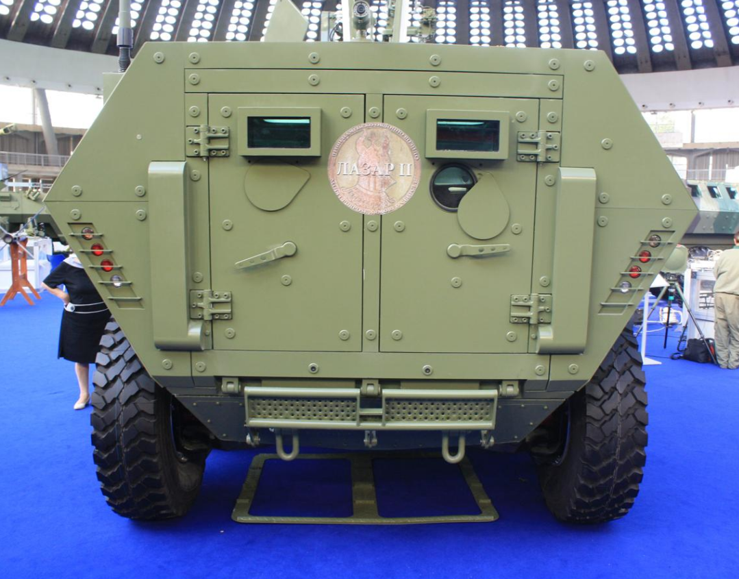 The Multi-Role Armored Vehicle Lazar 2 8×8 is based on modifications of the concept and the technical solutions implemented on the functional model of Lazar vehicle. These modifications are carried on with the purpose to further harmonize the basic characteristic of the vehicle with contemporary international trends in the development of families of multi-role armored wheel-type vehicles. The concept of the first Lazar vehicle represented a combination of the characteristics of MRAP and MRAV (Multirole Armoured Vehicle) type vehicles, while the Lazar 2 is closer to the MRAV concept first of all because of the introduction of independent suspension, which allows the platform to be customized to different roles. The concept provides for installation of different types of weapon turrets depending on the purpose of the vehicle.[4][5]