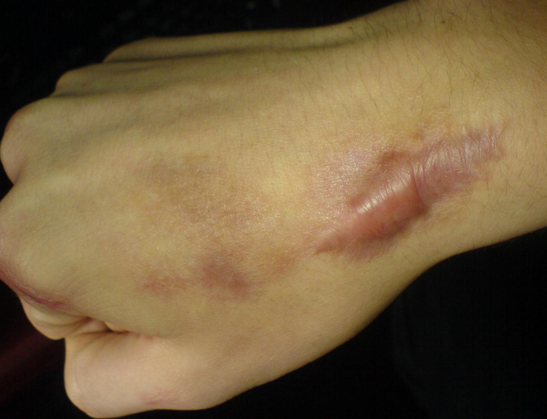 Keloids expand in claw-like growths over normal skin.[1] They have the capability to hurt with a needle-like pain or to itch, the degree of sensation varying from person to person.