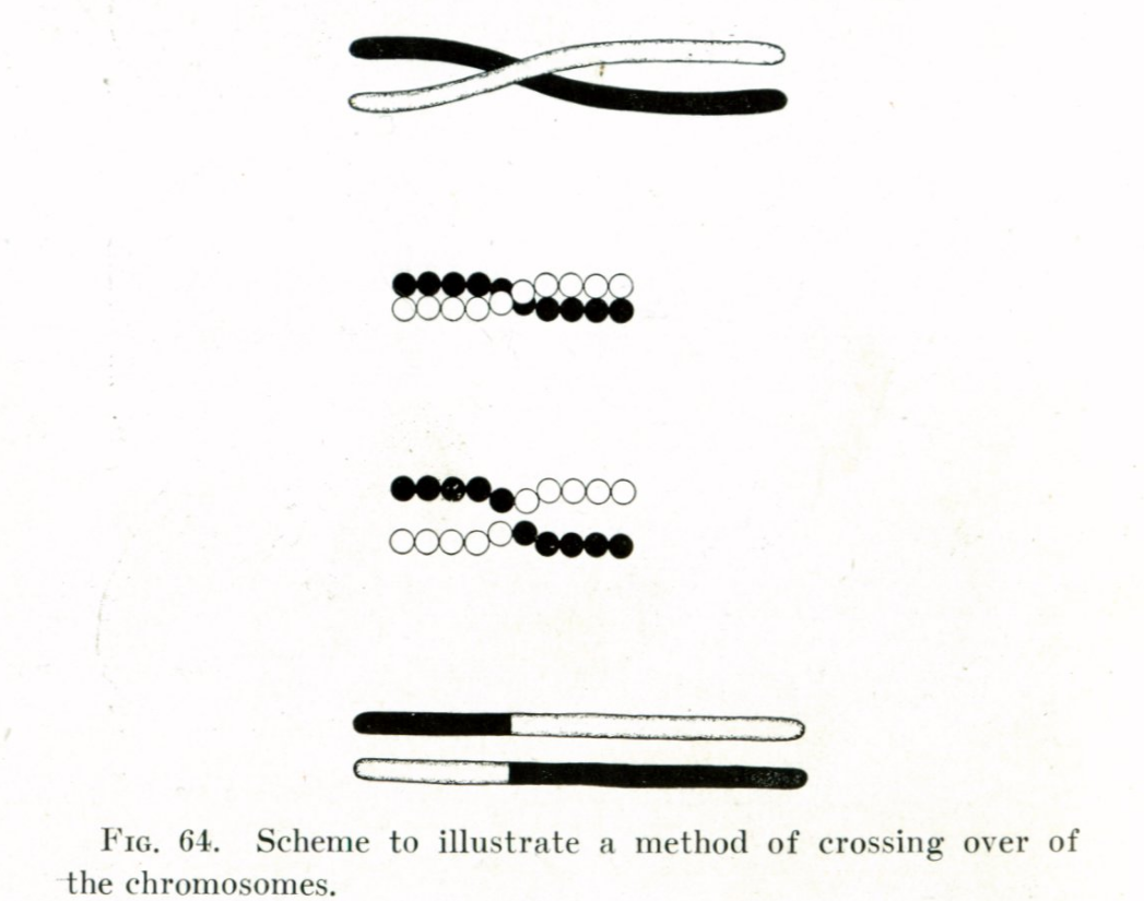 1900 marked the so-called rediscovery of Mendel: Hugo de Vries, Carl Correns, and Erich von Tschermak independently arrived at Mendel's laws (which were not actually present in Mendel's work).[22] Soon after, cytologists (cell biologists) proposed that chromosomes were the hereditary material. Between 1910 and 1915, Thomas Hunt Morgan and the "Drosophilists" in his fly lab forged these two ideas—both controversial—into the "Mendelian-chromosome theory" of heredity.[23] They quantified the phenomenon of genetic linkage and postulated that genes reside on chromosomes like beads on string; they hypothesized crossing over to explain linkage and constructed genetic maps of the fruit fly Drosophila melanogaster, which became a widely used model organism.[24][25]