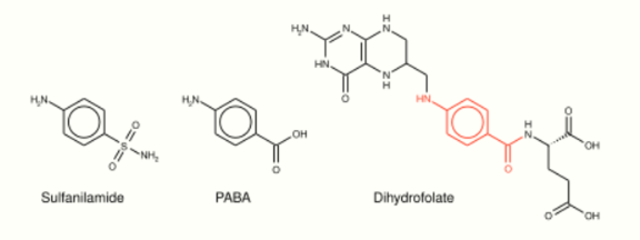 In bacteria, antibacterial sulfonamides act as competitive inhibitors of the enzyme dihydropteroate synthase (DHPS), an enzyme involved in folate synthesis. Sulfonamides are therefore bacteriostatic and inhibit growth and multiplication of bacteria, but do not kill them. Humans, in contrast to bacteria, acquire folate (vitamin B9) through the diet.[1]