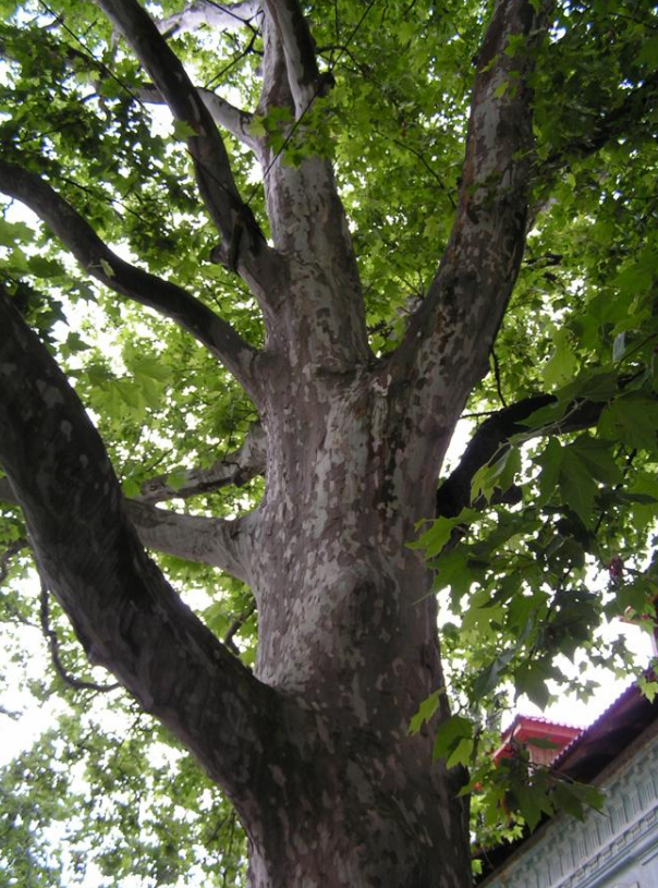 Plant hybrids are generally given names that include an "×" (not in italics), such as Platanus × acerifolia for the London plane, a natural hybrid of P. orientalis (oriental plane) and P. occidentalis (American sycamore).[73][74] The parent's names may be kept in their entirety, as seen in Prunus persica × Prunus americana, with the female parent's name given first, or if not known, the parent's names given alphabetically.[75]