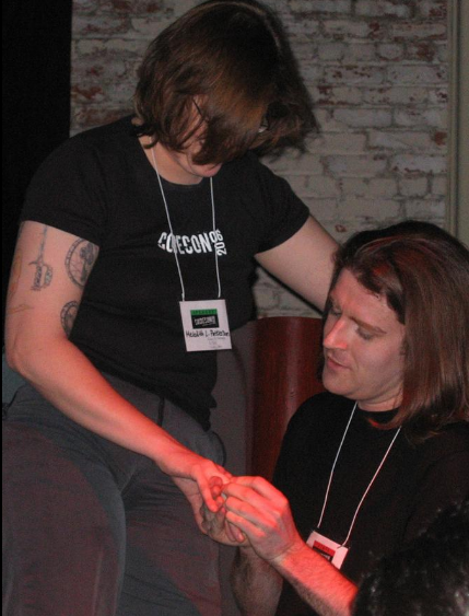 A two-time CodeCon presenter, Patterson married the co-organizer of the event, Len Sassaman, after a public proposal at CodeCon 2006. As Sassaman was also famous among the geek community, their marriage was held up as an example of a geek power couple.[30] They were together until Sassman's death in 2011.