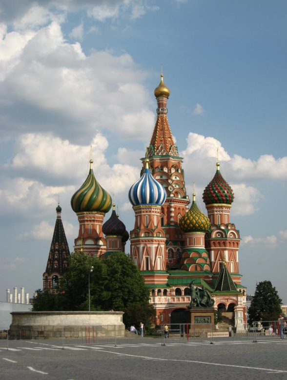 Many Orthodox churches worldwide are named after this feast. The first churches dedicated to feast of Pokrov appeared in Russia in the 12th century. Probably the most famous Russian church named for the feast day is Saint Basil's Cathedral, Red Square, Moscow, which is officially entitled "the Church of Intercession of Our Lady that Is on the Moat" (Russian: Собор Покрова пресвятой Богородицы, что на Рву) or shortly "Intercession Cathedral upon moat" (Russian: Храм Покрова "на рву").[7] The other one is the Church of Intercession in Bogolyubovo near Vladimir on the Nerl River (Russian: Церковь Покрова на Нерли, Tserkov Pokrova na Nerli). Both churches are on the United Nations ' World Heritage List, the latter as part of the site White Monuments of Vladimir and Suzdal. There is also a Church of the Intercession of the Holy Virgin in St. Petersburg.[8]