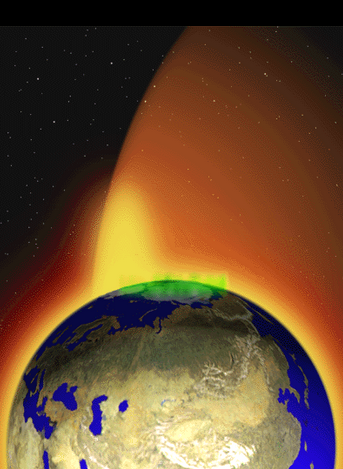 Above the Earth's surface, the ionosphere is a plasma,[39] and the magnetosphere contains plasma.[40] Within our Solar System, interplanetary space is filled with the plasma expelled via the solar wind, extending from the Sun's surface out to the heliopause. Furthermore, all the distant stars, and much of interstellar space or intergalactic space is also likely filled with plasma, albeit at very low densities. Astrophysical plasmas are also observed in accretion disks around stars or compact objects like white dwarfs, neutron stars, or black holes in close binary star systems.[41] Plasma is associated with ejection of material in astrophysical jets, which have been observed with accreting black holes[42] or in active galaxies like M87's jet that possibly extends out to 5,000 light-years.[43]
