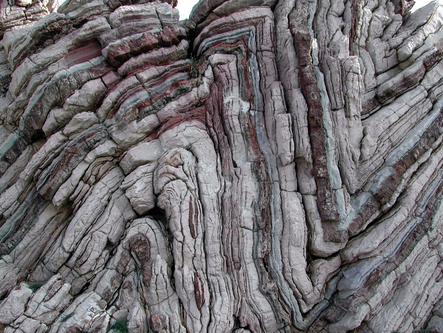 Even higher pressures and temperatures during horizontal shortening can cause both folding and metamorphism of the rocks. This metamorphism causes changes in the mineral composition of the rocks; creates a foliation, or planar surface, that is related to mineral growth under stress. This can remove signs of the original textures of the rocks, such as bedding in sedimentary rocks, flow features of lavas, and crystal patterns in crystalline rocks.