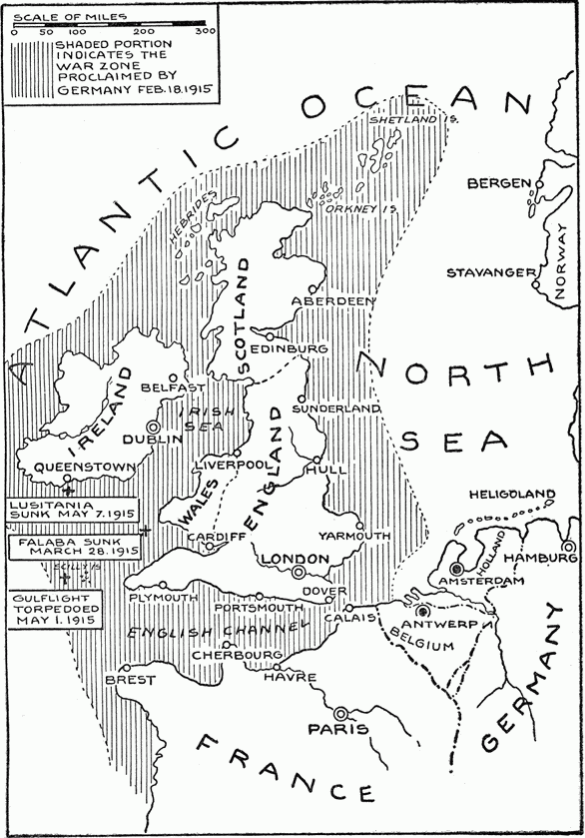 Shaded area shows "War Zone" announced by Germany on 4 February 1915. https://handwiki.org/wiki/index.php?curid=1905888