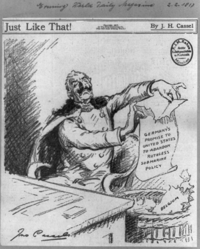 On 3 February, in response to the new submarine campaign, President Wilson severed all diplomatic relations with Germany, and the US Congress declared war on 6 April.
