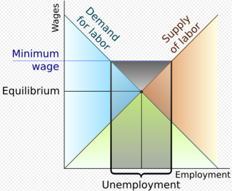 According to the supply and demand model of the labor market shown in many economics textbooks, increasing the minimum wage decreases the employment of minimum-wage workers.[28] One such textbook states:[29]